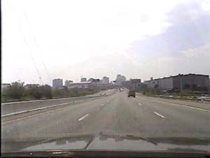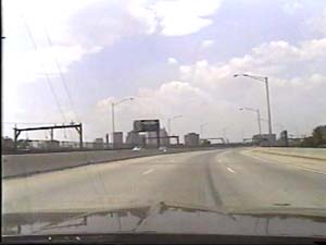 | This is the Essex Freeway, I-280 east, just west of exit 13(First Street, Branch Brook Park, UMDNJ, NJIT) in Newark. Filmed July 27, 1999. |