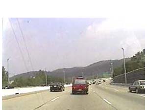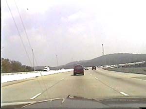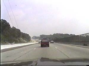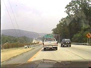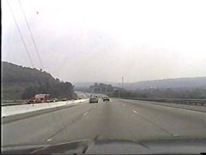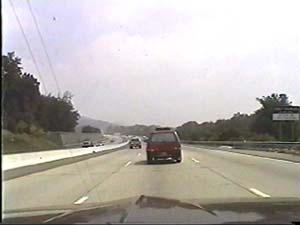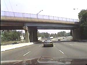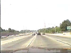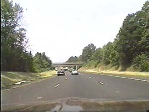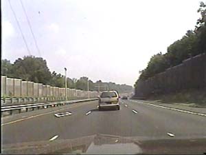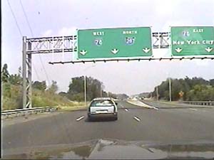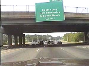 | This is the Middlesex Freeway, I-287 north, just south of exit 21(I-78, New York City, Easton PA) in Bridgewater Township. Filmed July 31, 1999. |