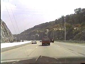 | This is the Middlesex Freeway, I-287 south, south of exit 57(Skyline Drive, Ringwood) in Oakland Boro. Filmed July 31, 1999. |