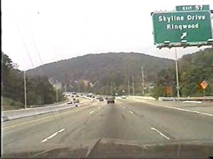 | This is the Middlesex Freeway, I-287 south, at exit 57(Skyline Drive, Ringwood) in Oakland Boro. Filmed July 31, 1999. |