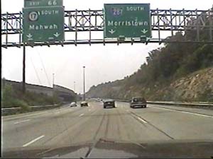 | This is the Middlesex Freeway, I-287 south, at exit 66(South NJ 17, Mahwah) in Mahwah Township. Filmed July 31, 1999. |