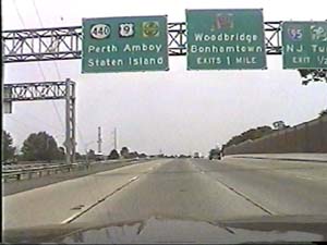 | This is the Middlesex Freeway, I-287 north, at exit 1(US 1, Newark, Trenton) in Edison Township. Filmed July 31, 1999. |