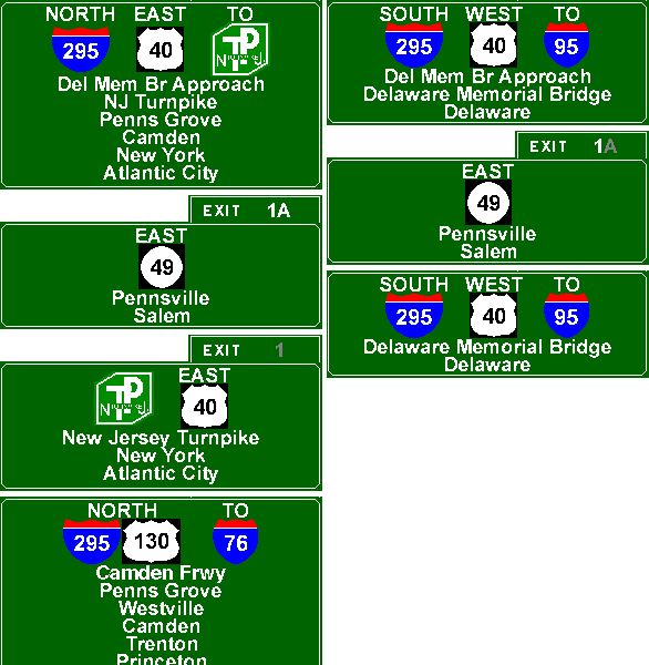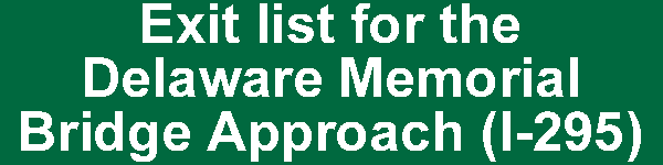 Exit list for the Delaware Memorial Bridge Approach (I-295). Exit graphics courtesy of Jeff Taylor and Scott Oglesby. |