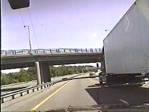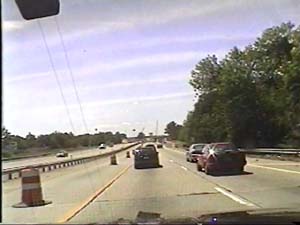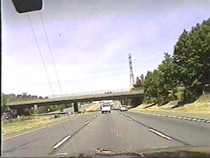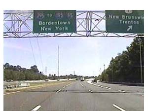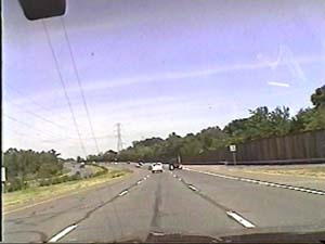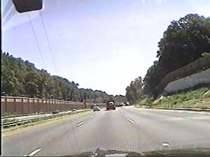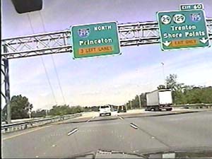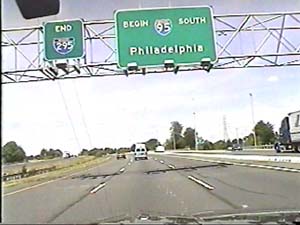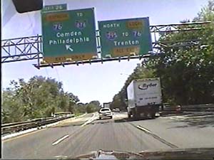 | This is the Camden Freeway, I-295 north, just north of exit 61(Arena Drive, Whitehorse Avenue, Olden Avenue) in Hamilton Township. Filmed August 10, 1999. |
