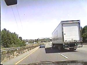 | This is the Camden Freeway, I-295 north, just north of exit 40(NJ 38, Mount Holly, Moorestown) in Mount Laurel Township. Filmed August 10, 1999. |