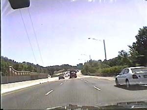 | This is the Camden Freeway, I-295 north, just north of exit 28(NJ 168, New Jersey Turnpike, Bellmawr, Runnemede, Mount Ephraim) in Bellmawr Boro. Filmed August 10, 1999. |
