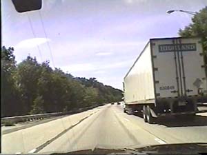| This is the Camden Freeway, I-295 south, just south of exit 43(Delran, Rancocas Woods) in Mount Laurel Township. Filmed August 10, 1999. |