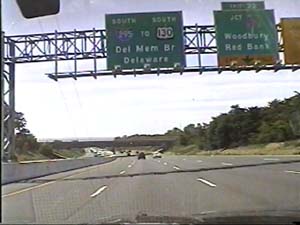 | This is the Camden Freeway, I-295 south, south of exit 10(Center Square Road, Swedesboro) in Logan Township. Filmed August 10, 1999. |