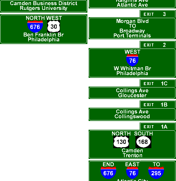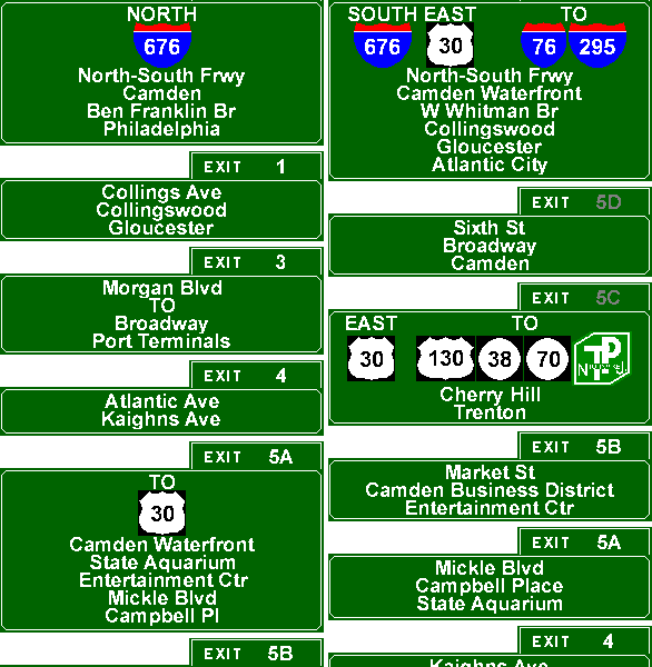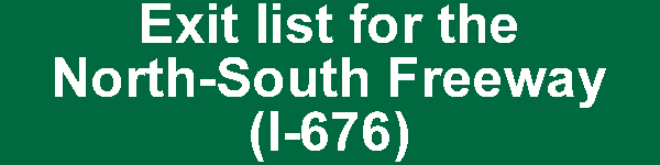 Exit list for the North-South Freeway (I-676). Exit graphics courtesy of Jeff Taylor and Scott Oglesby. |