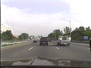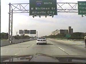 | This is the North-South Freeway, I-676 south, just south of exit 4(Kaighns Avenue, Atlantic Avenue) in Camden. Filmed July 27, 1999. |