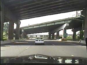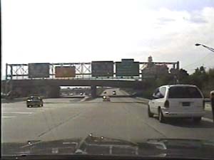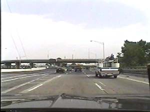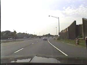 | This is the North-South Freeway, I-676 south, north of exit 4(Kaighns Avenue, Atlantic Avenue) in Camden. Filmed July 27, 1999. |