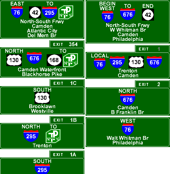 | Connecting Lists NJ 42 SOUTH / I-76 WEST NJ 76C I-295 I-676 Other Lists Dan Moraseski's List Jeff Taylor's List pictures / map / exit list / article (Steve Anderson) Back to New Jersey Expressways and Tollways |