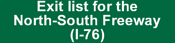 Exit list for the North-South Freeway (I-76). Exit graphics courtesy of Jeff Taylor and Scott Oglesby. |