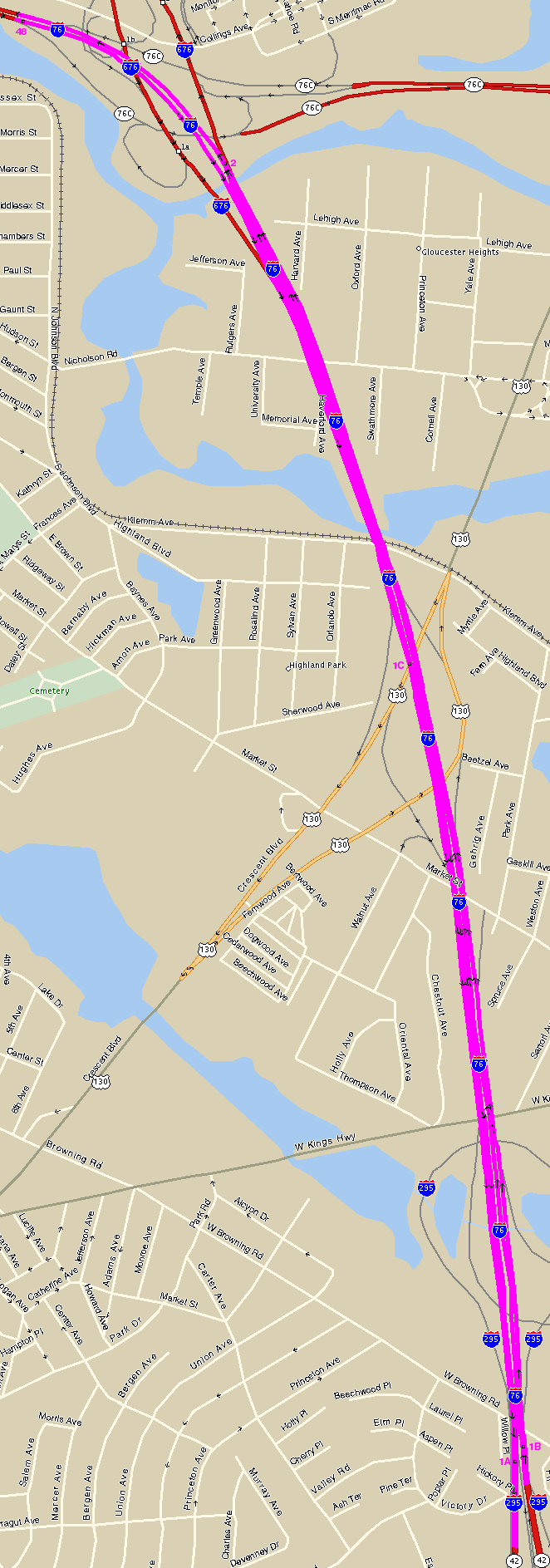 | Connecting Maps NJ 42 SOUTH / I-76 WEST NJ 76C I-295 I-676 Other Maps NJDOT's Straight Line Diagram pictures / map / exit list / article (Steve Anderson) Back to New Jersey Expressways and Tollways |