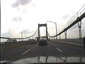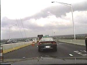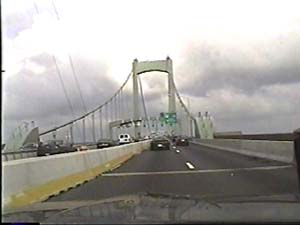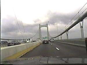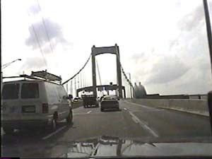 | This is halfway across the Walt Whitman Bridge, on I-76 east, entering Gloucester City, New Jersey, from Philadelphia, Pennsylvania. Filmed July 1, 1999. |