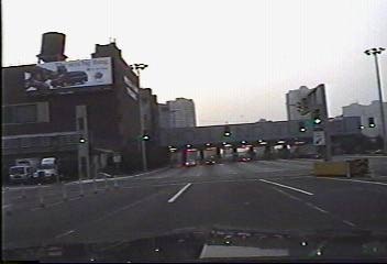 | This is the end 12th Street, I-78 east, in Jersey City. The cross street ahead is Luiz Munoz Marin Boulevard. I-78 continues east as the Holland Tunnel, which is directly ahead behind the toll plaza. Filmed July 3, 1999. |