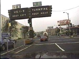 This is the beginning of 14th Street, I-78 west, in Jersey City. The cross street is Luiz Munoz Marin Boulevard. Filmed July 3, 1999. |