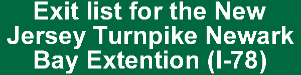 Exit list for the New Jersey Turnpike Newark Bay Extention (I-78). Exit graphics courtesy of Jeff Taylor and Scott Oglesby. |