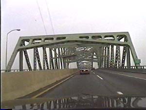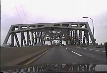 | This is the New Jersey Turnpike Newark Bay Extention, I-78 east, in Newark, beginning to cross the main span of the Bayonne-Port Newark Bridge. Filmed July 1, 1999. |