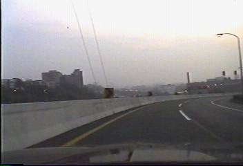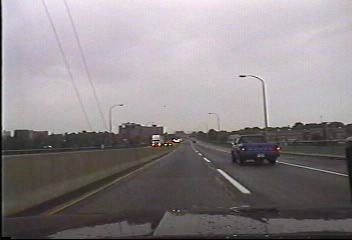 | This is the New Jersey Turnpike Newark Bay Extention, I-78 west, east of the exit 14C toll plaza in Jersey City. Filmed July 3, 1999. |