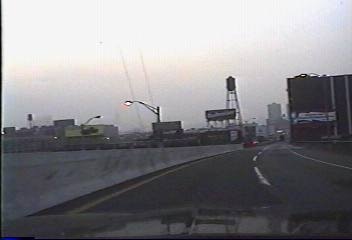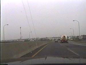 | This is the New Jersey Turnpike Newark Bay Extention, I-78 west, east of exit 14A(Bayonne) in Jersey City. Filmed July 3, 1999. |