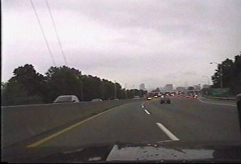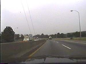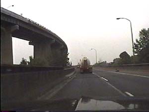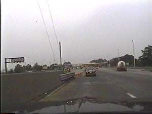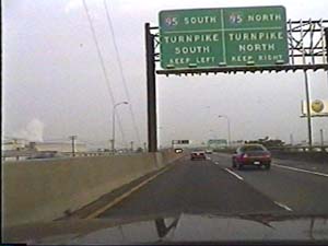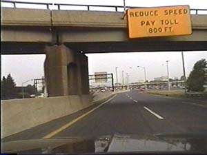 | This is the New Jersey Turnpike Newark Bay Extention, I-78 west, at the exit 14C toll plaza in Jersey City. Filmed July 3, 1999. |
