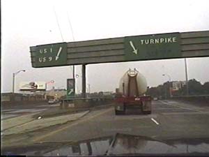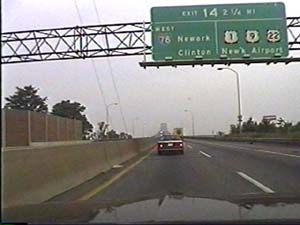 | This is the New Jersey Turnpike Newark Bay Extention, I-78 west, at exit 14A(Bayonne) in Jersey City. Filmed July 3, 1999. |