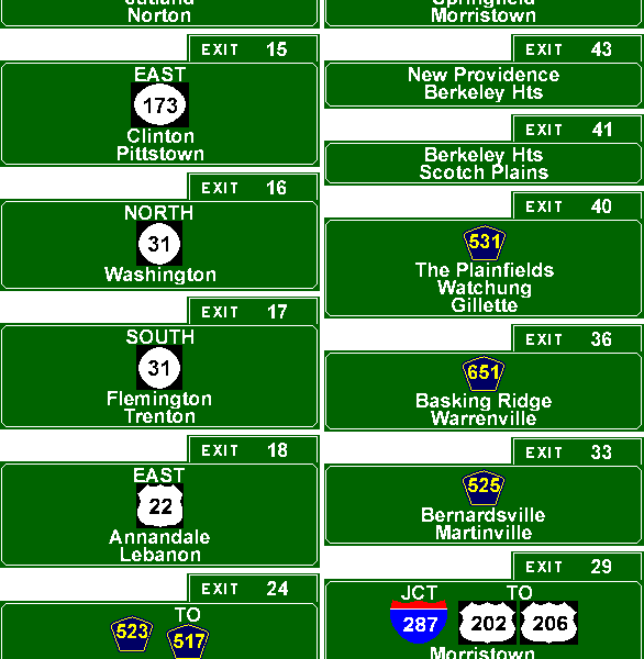 | Connecting Lists I-78 EAST / I-78 WEST (Jeff Kitsko) I-78 (Local Lanes) I-287 Other Lists Dan Moraseski's List C.C. Slater's List Michael Adam's List pictures / map / exit list / article (Steve Anderson) Back to New Jersey Expressways and Tollways |