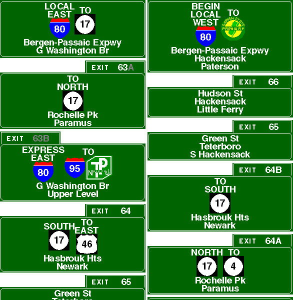 Exit list for the Bergen-Passaic Expressway Local Lanes (I-80) Exit graphics courtesy of Jeff Taylor and Scott Oglesby. |