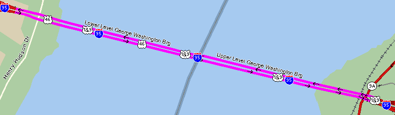Map of the George Washington Bridge Lower Level (I-95) Map by MapQuest. |