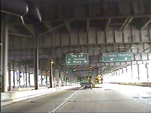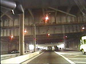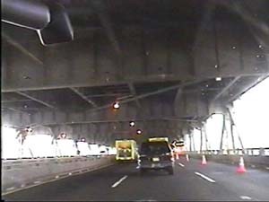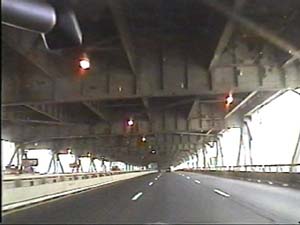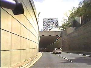 This is the beginning of the George Washington Bridge, lower level, I-95 south, in Manhattan, New York. Filmed August 24, 1999. |