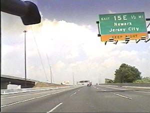 | This is the New Jersey Turnpike Eastern Spur, I-95 (Eastern Route) south, just south of exit 15E(Newark, Jersey City) in Newark. Filmed August 24, 1999. |