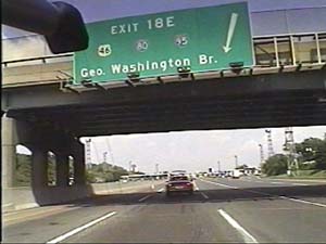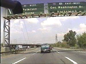 | This is the New Jersey Turnpike Eastern Spur, I-95 (Eastern Route) north, just before the split between I-80 bound traffic and I-95 bound traffic in Ridgefield Boro. Filmed August 24, 1999. |