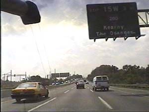 | This is the New Jersey Turnpike Eastern Spur, I-95 (Eastern Route) south, at exit 15W(I-280, Kearny, The Oranges) in Kearny. Filmed August 24, 1999. |