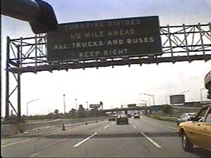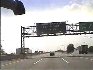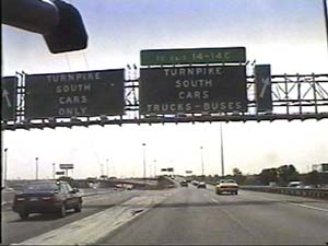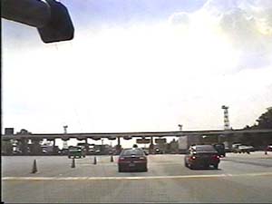 | This is the New Jersey Turnpike Eastern Spur, I-95 (Eastern Route) south, at the exit 16E toll plaza in Secaucus. Filmed August 24, 1999. |