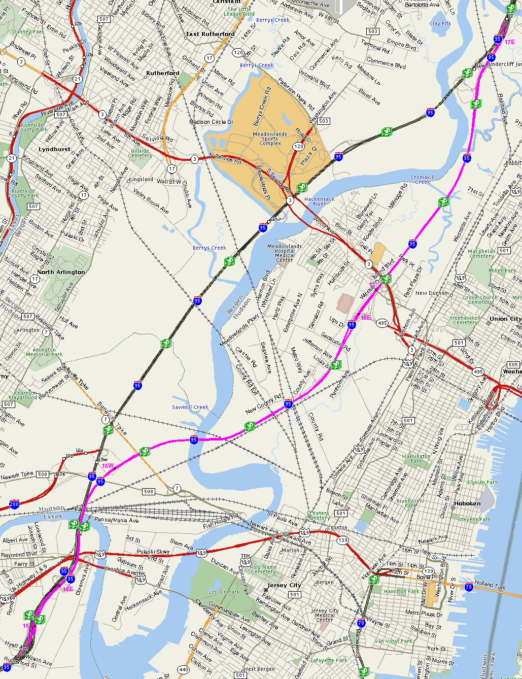 | Connecting Maps I-95 (EASTERN ROUTE) NORTH / I-95 (EASTERN ROUTE) SOUTH I-95 (Western Route) SOUTH I-95 (Western Route)(Exit 15 to Exit 17W) I-95 (Western Route) NORTH NJTP Truck US 1&9 I-280 NJ 495 NJ 3 Other Maps NJDOT's Straight Line Diagram pictures / map / exit list / article (Steve Anderson) Back to New Jersey Expressways and Tollways |