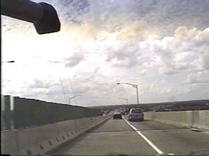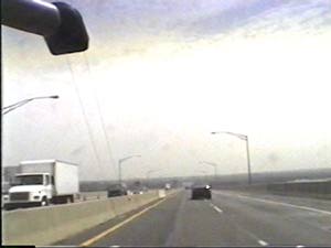 | This is the middle of the main span of the Pennsylvania Turnpike Delaware River Bridge, I-95 (Eastern Route) south, a.k.a. I-276 west, crossing from Burlington Township, New Jersey, into Bristol Township, Pennsylvania. It is also the official beginning of I-276, and the official end of I-95 (Eastern Route), as the bridge crosses the Pennsylvania / New Jersey border. Filmed August 25, 1999. |