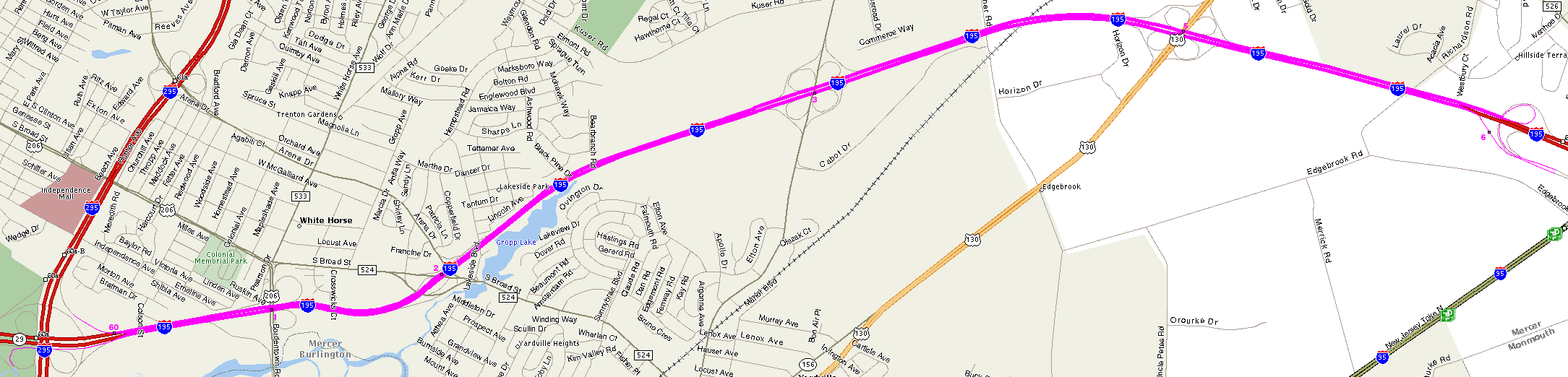 Map of the Central Jersey Expressway (I-95 Western Route via I-195) Map by MapQuest. |