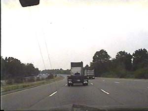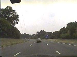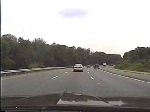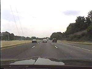 | This is the Scudders Falls Expressway, I-95 (Western Route) south, just south of exit 3(Scotch Road) in Hopewell Township. This section is just north of Trenton-Mercer Airport, which is behind the trees on the left. Filmed August 13, 1999. |