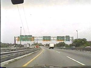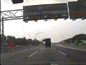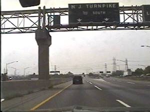 | This is the New Jersey Turnpike Northern Extention, I-95 south, north of the split between the Eastern and Western spurs of the New Jersey Turnpike in Ridgefield Park. Filmed August 13, 1999. |