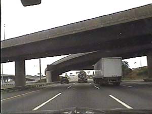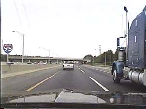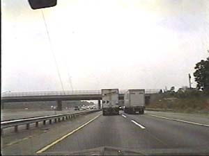 | This is the New Jersey Turnpike truck lanes, I-95 south, just north of exit 11(US 9, Garden State Parkway, Woodbridge, The Amboys, Shore Points) in Woodbridge Township. Filmed August 13, 1999. |