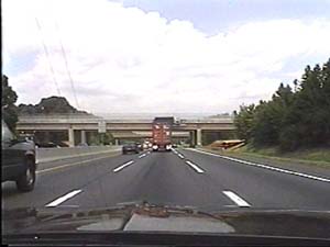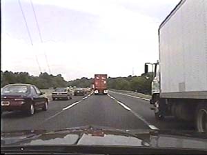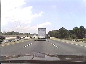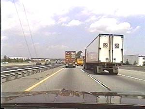 | This is the the New Jersey Turnpike truck lanes, I-95 north, south of exit 12(Carteret, Rahway) in Woodbridge Township. Filmed July 20, 1999. |