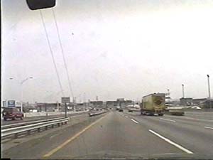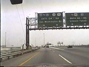 | This is the the New Jersey Turnpike truck lanes, I-95 north, south of exit 13A(Newark Airport, Elizabeth Seaport) in Elizabeth. Filmed August 13, 1999. |
