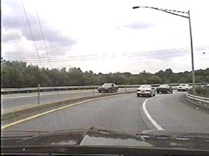 | This is the New Jersey Turnpike truck lanes, I-95 south, just north of exit 10(I-287, NJ 440, Perth Amboy, Metuchen, Edison Township, Outerbridge Crossing) in Edison Township. Filmed August 13, 1999. |