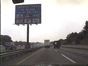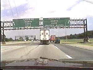 | This is the New Jersey Turnpike truck lanes, I-95 south, just south of exit 11(US 9, Garden State Parkway, Woodbridge, The Amboys, Shore Points) in Woodbridge Township. Filmed August 13, 1999. |