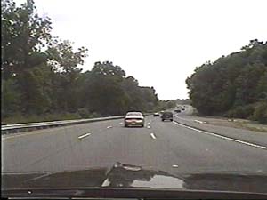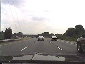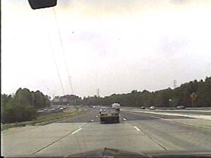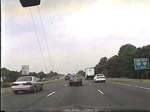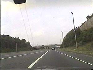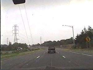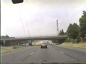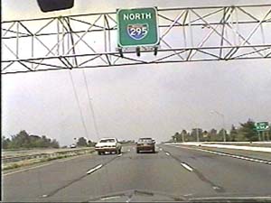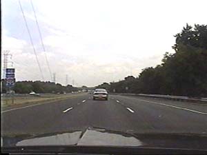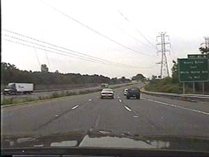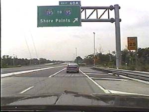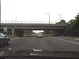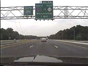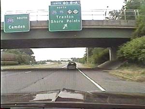 | This is the Camden Freeway, I-95 (Western Route) south, a.k.a. I-295 north, just after exit 61(Arena Drive, Whitehorse Avenue, Olden Avenue) in Hamilton Township. Filmed August 13, 1999. |