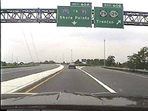 | This is the Camden Freeway, I-95 (Western Route) south, just north of exit 7(US 206, Lawrenceville, Princeton, Trenton) in Lawrence Township. Filmed August 13, 1999. |
