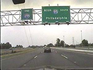 | This is the Camden Freeway, I-95 (Western Route) south, just south of exit 67(US 1, New Brunswick, Trenton) in Lawrence Township. Filmed August 13, 1999. |