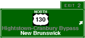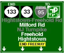| Hightstown Bypass (NJ 133) Eastbound | Hightstown Bypass (NJ 133) Westbound | ||||||||||||||||||||||||||