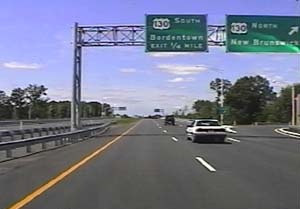 | This is the Hightstown Bypass (NJ 133) westbound at Exit 2(US 130, New Brunswick, Bordentown) in East Windsor Township. Filmed August 17, 2000. |